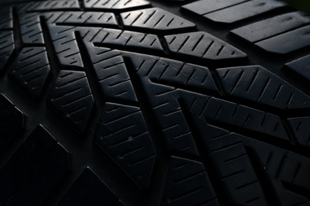 Close up picture of brand new black automobile tyre