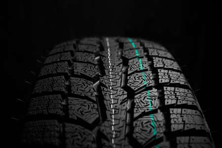 New winter tire close-up on black backround