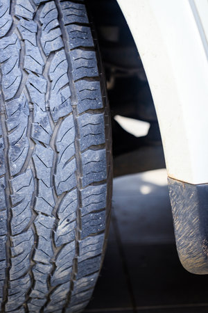 Car tires close-up with shallow depth of field, selective focus