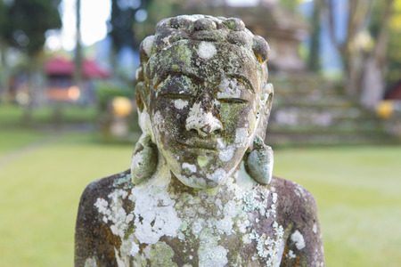 Closeup of Balinese God statue in temple complex