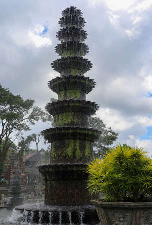 Eleven level fountain in the tropical park Tirta Gangga. 11 tiered lotus fountain symbol of Tirta Gangga, Bali, Indonesia. The main fountain in the park of Hindu Temple Tirta Gangga