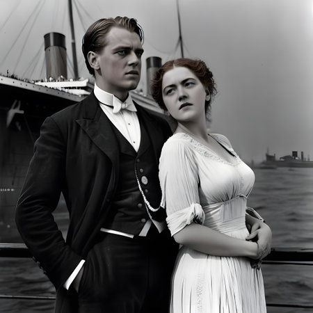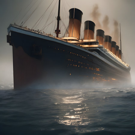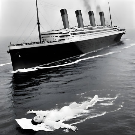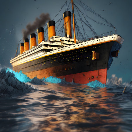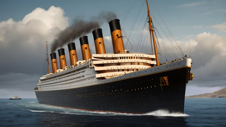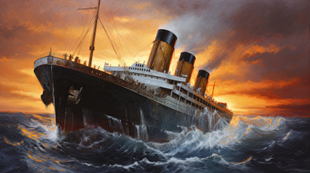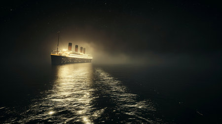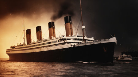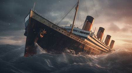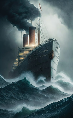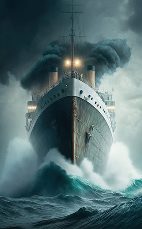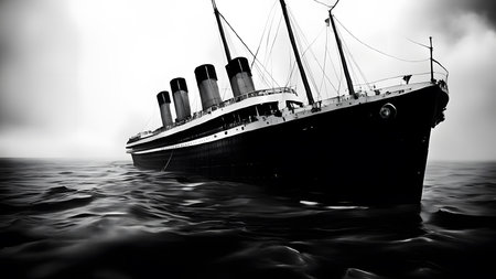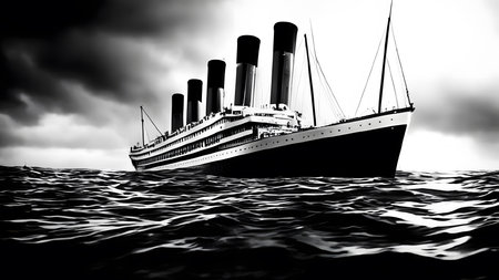 Iconic tragedy the sinking of the RMS Titanic in black and white. Concept Titanic History, Maritime Disaster, RMS Titanic, Sinking Tragedy, Black and White Photography