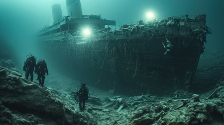 titanic ship wreck in the bottom of atlantic ocean illustration generative ai