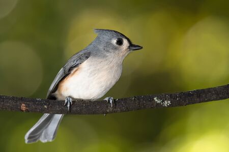 Tufted Titmouse (baeolophus bicolor) on a wild cherry perch with a colorful background