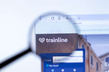 New York, USA - September 29, 2020: thetrainline.com Trainline company website with logo close up, Illustrative Editorial.