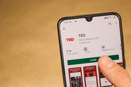 Los Angeles, USA - September 9, 2019: The TED website app in play market. TED logo visible