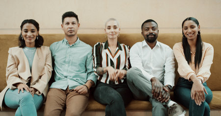Meet the best team in the business. Portrait of a group of young creatives sitting together on a couch in an office.