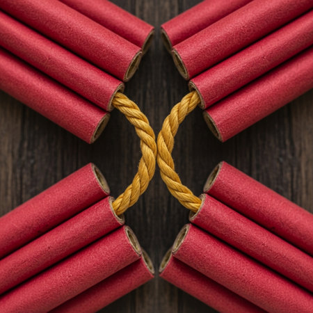 A Hero Detail shot focusing on the central intersection of a pair of unlit, decorative firecracker s