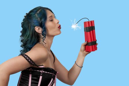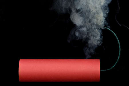 Burning dynamite with sparks and smoke on black background. 3d illustration
