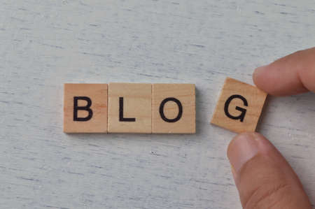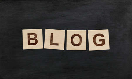 letters of the alphabet in a blue square with the word blog. a regularly updated website or web page, typically one run by an individual or small group