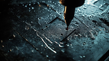 A close-up image showcasing an engraving tool delicately etching intricate designs onto a dark surface, highlighting creativity and craftsmanship.