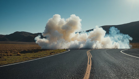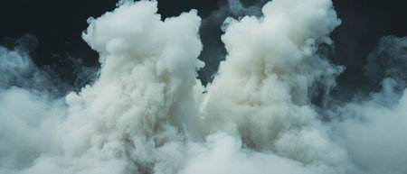 White smoke billows dramatically against a stark black background creating a striking contrast