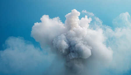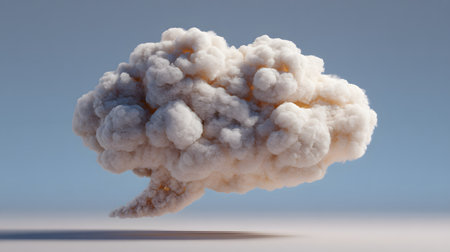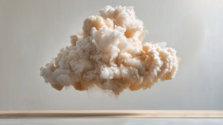 Digital representation of fluffy cloud floating against clean white background, evoking sense of tranquility and creativity. soft textures and warm tones create inviting atmosphere