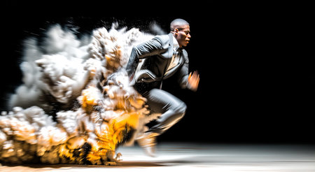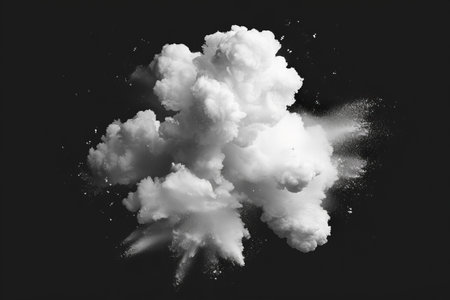 A dramatic capture of white powder exploding mid-air against a dark background, creating a bold visual impact.