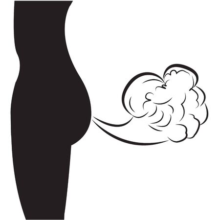 Excess gas from human body. Farting vector illustration. Silhouette black white