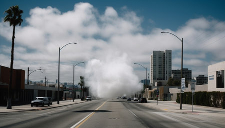 City traffic speeds on multiple lane highways under urban skylines generated by artificial intelligence