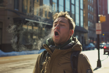 The Alluring Cough: Captivating Portrait of a Handsome Man in Isolation