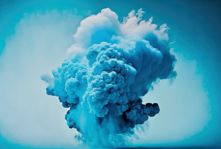 Colorful smoke clouds in blue yellow and pink on blue background. Abstract vibrant concept with pastel hues for modern creative visual projects.