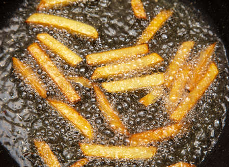 french fries frying with unhealthy and dirty oil, it cause desese like cancer