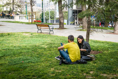 Istanbul, Turkey - April 08, 2016: Young couple is spending their free time in Gezi park in Istanbul, Turkey