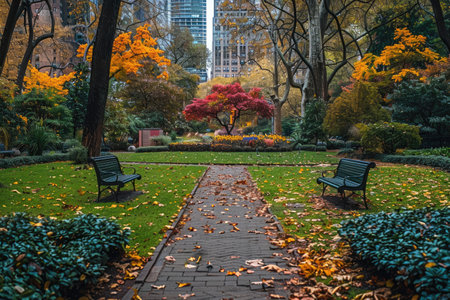 New York City - USA - Oct 24 2019: Fall foliage color of Madison Square Park Flatiron District in Midtown Manhattan