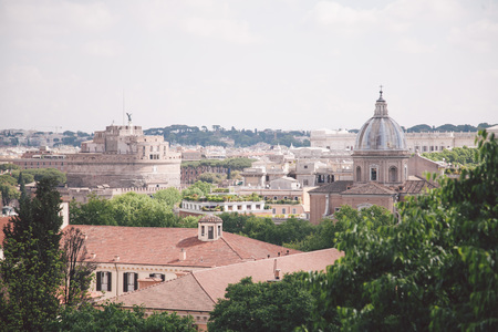 Rooftop view of Rome historical architecture and city skyline. Italy.