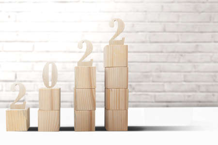 Wooden blocks for change year 2020 to 2021. New year and holiday concept.
