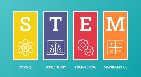 STEM Science, Technology, Engineering, and Mathematics Education on a Wide Banner, Business and Technology Concept.