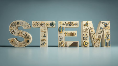 Engaging and colorful representation of STEM, featuring intricate details showcasing the essence of science, technology, engineering, and mathematics. Perfect for educational materials and creative projects.