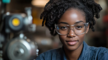 Confident woman in glasses, showcasing her skills in a creative workspace.