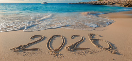 2020 year on the sandy beach