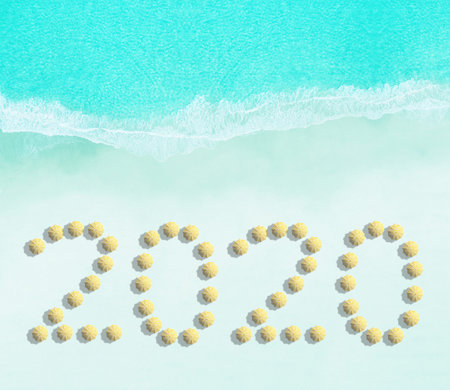 Numbers 2020 on beach - concept holiday background