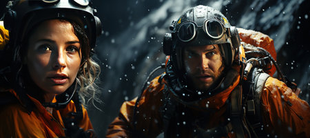 Two commandos train at the base. Climbers. SWAT, police, counterterrorism concept. Mixed media