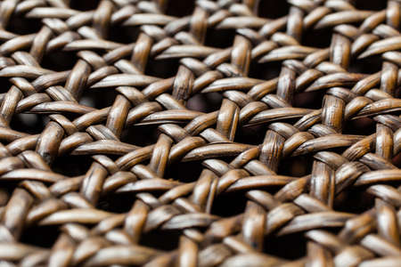 Wicker texture in dark brown tones. Bound stripes made of artificial plastic material.