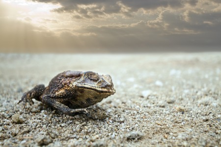 Amphibian Anura frog on a rough pavement