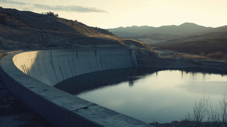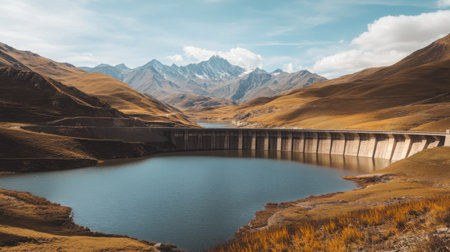 Harnessing the Power of Water: A Hydroelectric Dam Demonstrating the Energy Potential of Water Sources on International Day of Clean Energy. Concept Hydroelectric Power, Clean Energy