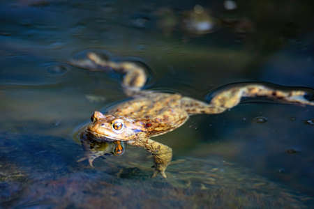 frog swimming in a pond at springtime