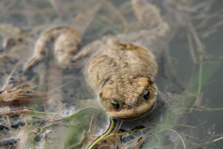 Close up of a common toad (Bufo bufo) in water