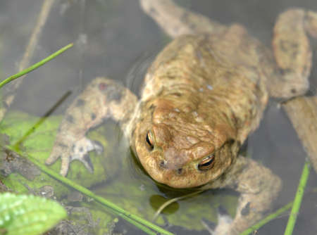detail of a common toad resting in a pond