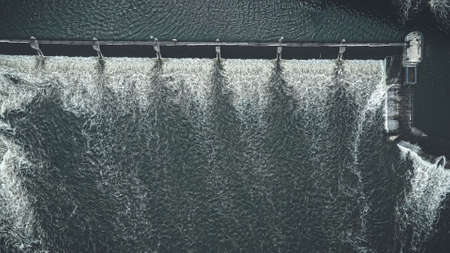 Dam and turbines of a hydroelectric power station with falling water flows