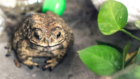Toad Face portrait of large amphibian in the nature habitat. Animal in the tropic forest. Wildlife scene from nature.