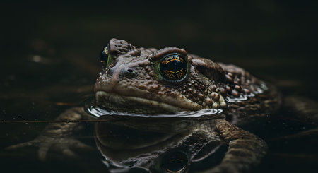 AI Generated. Common Toad Emerges from Water in Natural Habitat