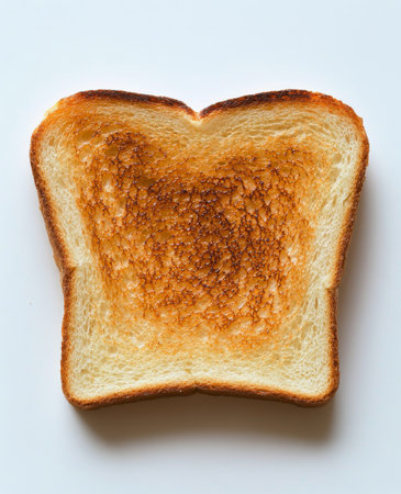 A golden-brown slice of toast on a bright white surface