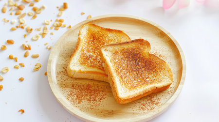 Simple Delight: Golden Toast on a Wooden Plate in Morning Sunlight
