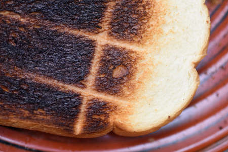 The theme of the Breakfast. Crispy crispy toast on the plate. Macro