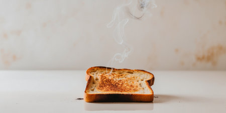 AI Generated. Burnt Toast on Kitchen Counter with Smoke Rising