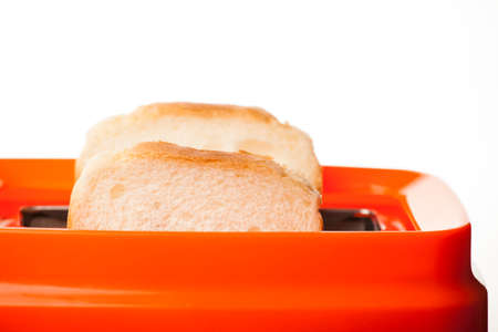 Toaster with bread slices making machine tool fast on white background