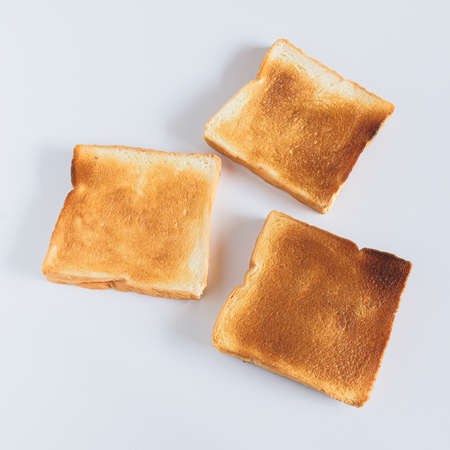 Slices of toast bread on white background. Top view.