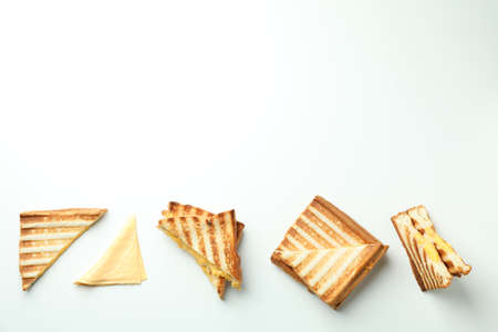 Grilled sandwiches with cheese on white background