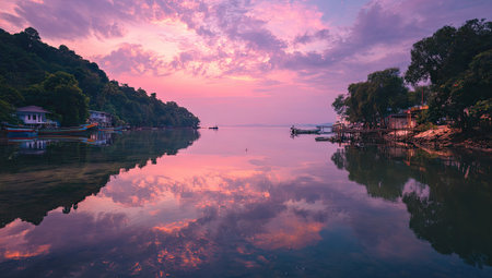 Scenic view of water front city in Tigaras, Simalungun, North Sumatra, Indonesia